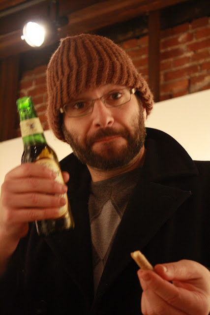 The art gallery pictures are a little bit more sophisticated than the comic book store selection. If you look really hard, you can even see D. using his pinky to drink his... beer! Beer is not classy. I am ashamed.